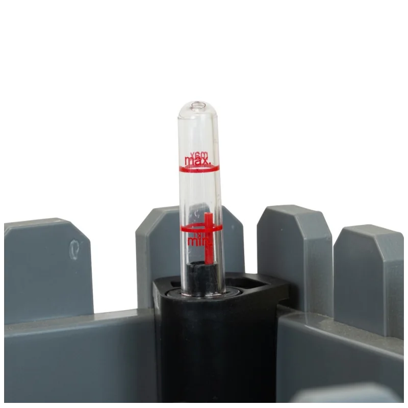 Dim: L.30 x l.30 x H. 25cm. Avec niveau d'eau gradué et résreve d'eau de 2,1L.