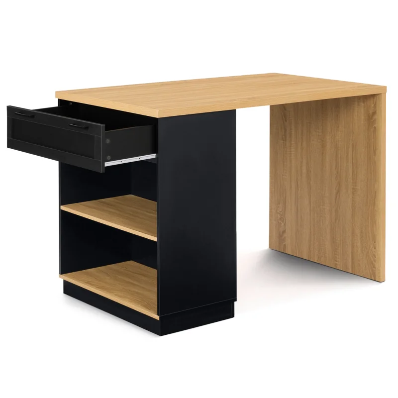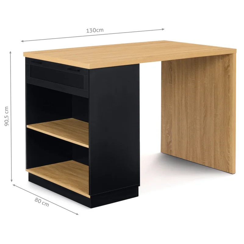 Son plan de travail épais aspect bois et son grand tiroir avec encadrementlui confère un style chaleureux et cossu à la fois.Grâce à sa longueur de 130 cm, il vous offrira un espace plan de travail supplémentaire. Dimensions globales : (L) 130 x (l) 80 (H) 90.5 cm
