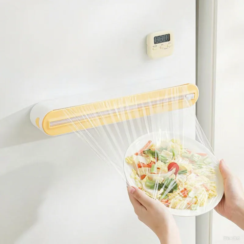 Plus besoin de chercher votre rouleau de film étirable ! Fixez-le en un clin d'œil sur votre frigo, votre hotte ou votre micro-ondes grâce à ses aimants intégrés. Le cutter coulissant est conçu pour une découpe précise et sécurisée, vous faisant gagner un temps précieux.