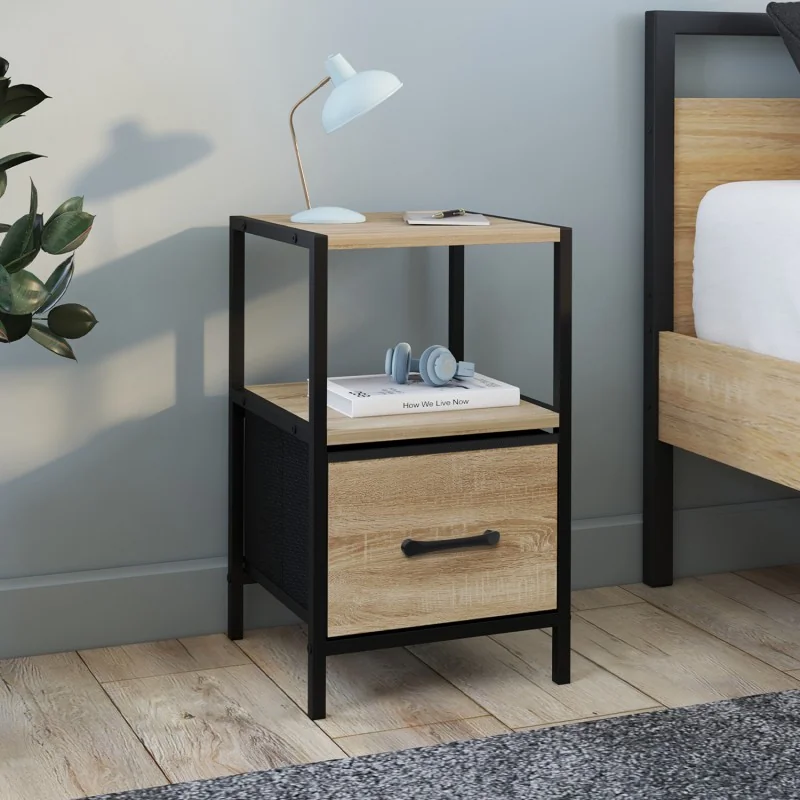 Hyper tendance, ce lot de 2 tables de chevet au style industriel bi-matière bois et fibre non tissée viendra parfaire la décoration de votre chambre.