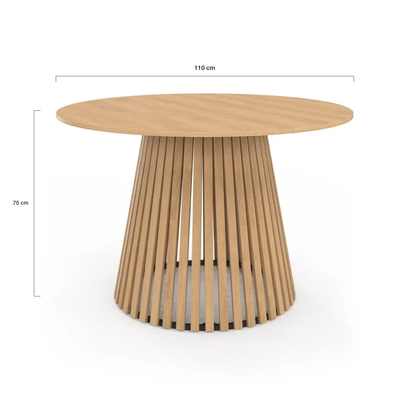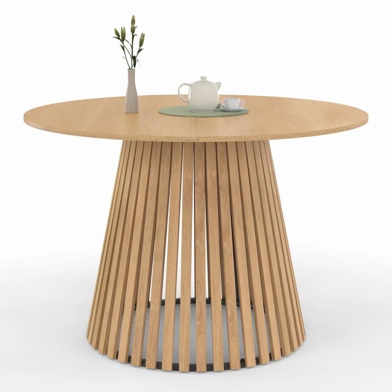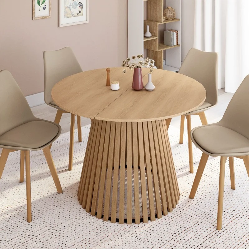 Craquez pour cette magnifique table à manger au design hyper tendance. Son plateau rond aspect bois apportera un côté chaleureux et accueillant à votre salle à intérieur et son piètement en lattes apportera quant à lui la touche design !